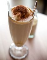 Ice, ice cream, milk with either a coffee shot or chocolate sauce, sometimes topped with whipped cream.