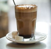 Espresso coffee with steamed milk with very little froth, served in a cup. An Australian invention (although New Zealand claims it too, like the pavlova)
